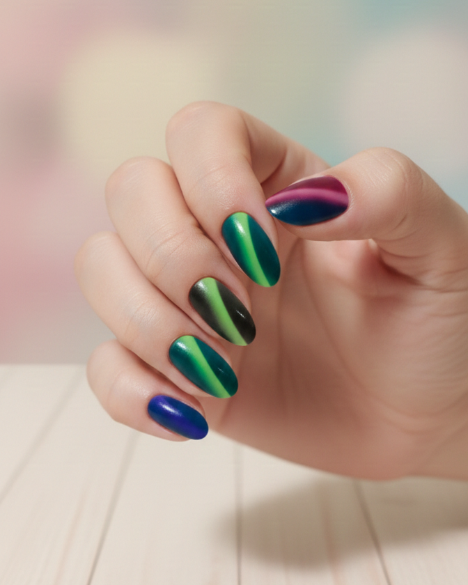 Design: Attractive magnetic cat-eye effect (blue, green and purple shades).