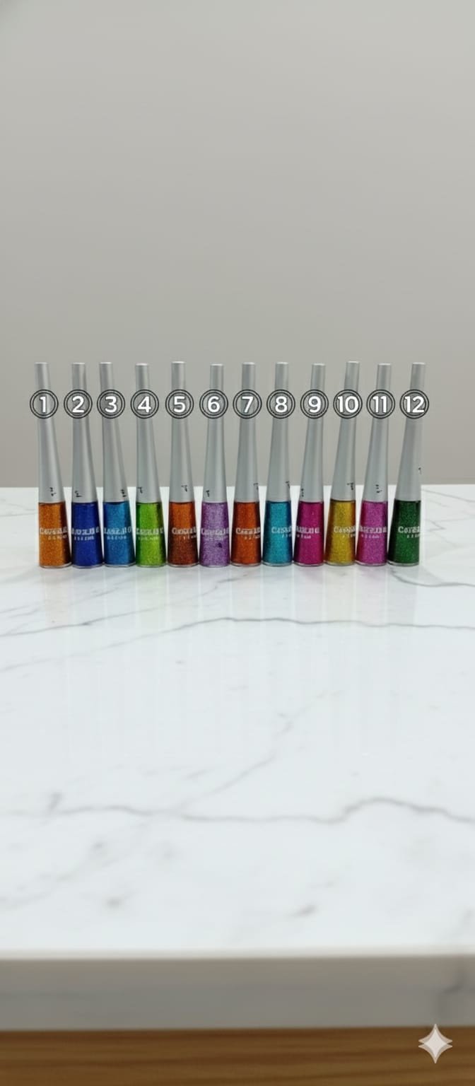 গ্লিটারের চমক: এটি একটি ১৬টি ভিন্ন রঙের গ্লিটার লিকুইড আইলাইনারের কমপ্লিট সেট। প্রতিটি শেড আপনাকে দেবে একটি চোখ ধাঁধানো মেটালিক, শিমার ফিনিশ।