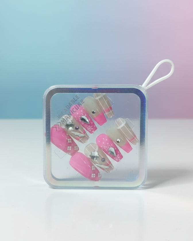সংক্ষিপ্ত বর্ণনা (Short Description): আপনার নখকে ঘরে বসেই দিন সেলুন ফিনিশ! আমাদের এই গর্জিয়াস প্রেস-অন নেল সেটটি বিশেষভাবে ডিজাইন করা হয়েছে স্টাইলিশ এবং আত্মবিশ্বাসী নারীদের জন্য। চমৎকার পিঙ্ক শেড, নিউড গ্লস এবং আকর্ষণীয় স্টোন ওয়ার্কের এই কম্বিনেশন যেকোনো পার্টি বা বিশেষ অনুষ্ঠানে আপনাকে করে তুলবে অনন্য।