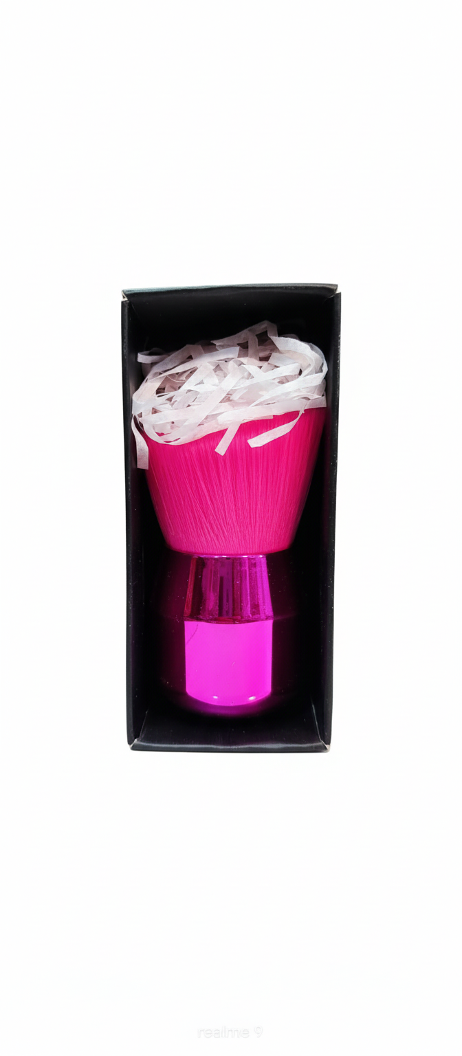 আকর্ষণীয় ডিজাইন: উজ্জ্বল পিঙ্ক মেটালিক হ্যান্ডেল এবং ফ্লাফি ব্রাশ হেড আপনার মেকআপ কিটের আকর্ষণ বাড়াবে।