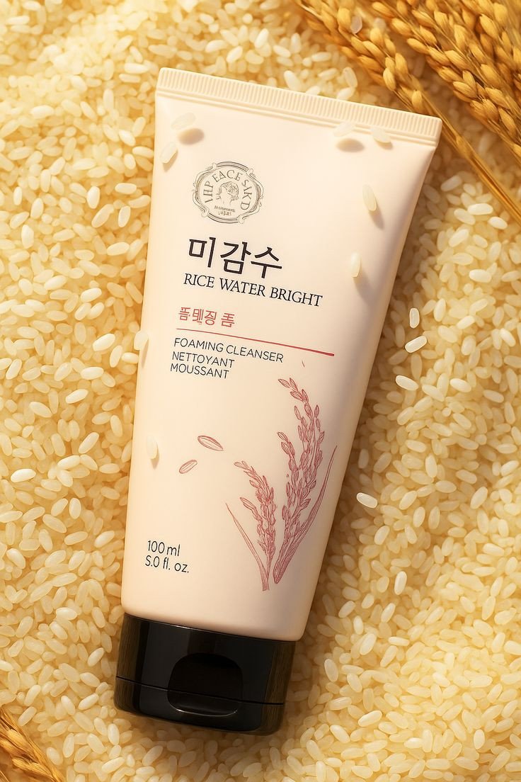 (Description)? The Face Shop Rice Water Bright Facial Foaming Cleanser ?The Korean secret to a bright, soft skin! This famous Rice Water Bright Foaming Cleanser from The Face Shop is a must-have for your daily skincare routine. Enriched with natural ingredients like Rice Water and Rice Extract, this cleanser deeply cleanses your skin, removes makeup and dirt, and at the same time leaves the skin bright and hydrated. Key Benefits: Deep Cleanser: Its thick and soft foam effectively lifts fine dust particles, excess oil, and makeup residue from the skin. Radiance Enhancement: The natural benefits of rice water give the skin a healthy glow and help even out the skin tone. Softness and Moisture: It does not dry the skin even after cleansing, but rather maintains the moisture of the skin, keeping it soft and smooth. Suitable: Can generally be used for all skin types. Directions for use: 1. Gently massage a small amount of cleanser onto a wet face. 2. Rinse thoroughly with water. Quantity: $150 \text{ ml} / 5.0 \text{ US fl. oz.}$